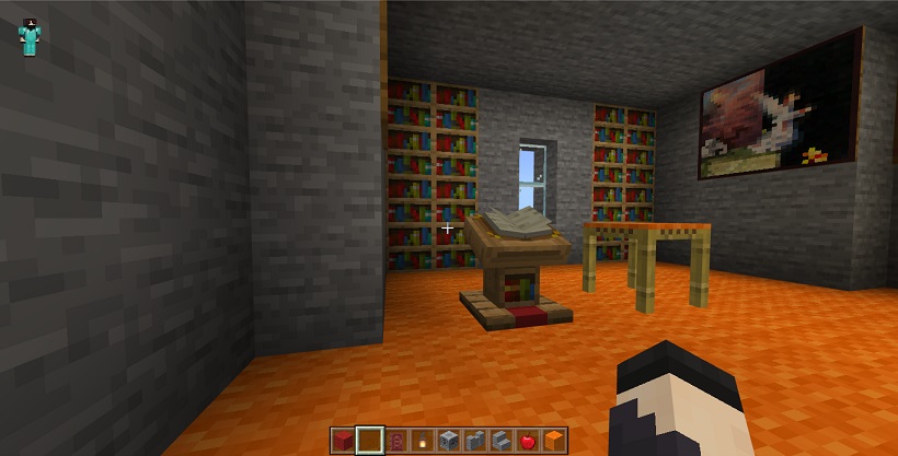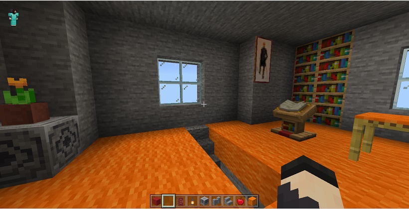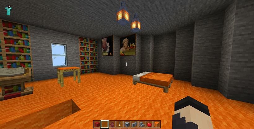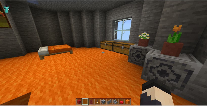 できれば皇族らしく天蓋付きベッドなどにしたかったのですが、マイクラではなかなかそれらしいモノが作れていません…。