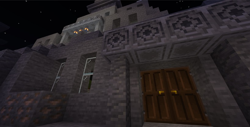 マイクラで建設中のガルトブルグ帝都でも、宮殿入口のナナメ下に貴族邸宅の入口を作ってあります。