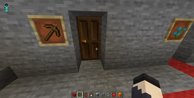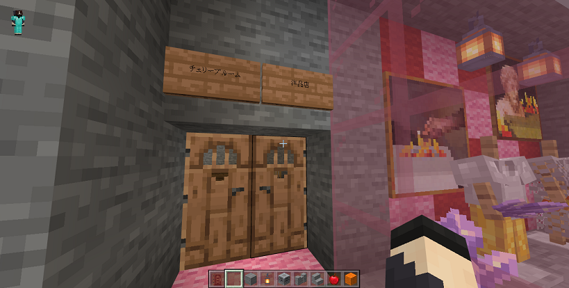 (マイクラの看板は「そのまま」だと「立て札」っぽい見た目ですが、壁に貼り付けると「看板」になります。デフォルトだと文字が小さ過ぎて、よく読めないのが難点です…。)
