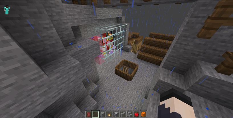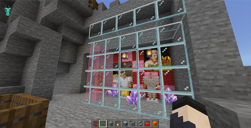 マイクラで「デパートのショーウィンドー」感を出すため、ガラスで周りを囲み、防具立てに装備を着せて配置し(マネキン代わり)、背景を飾りつけたり装飾用にアメジストを置いたり、いろいろしてみましたが…