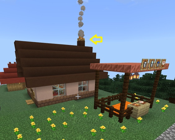 屋根の上には「植木鉢」を置いて「えんとつ」っぽく見せています。
