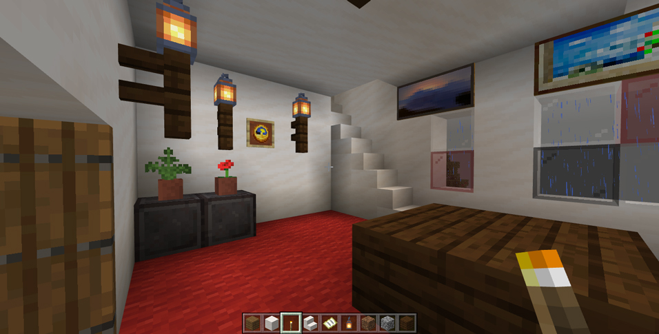 クリエイティブ・モード 空中庭園には管理小屋もあります 20220923 0 CM 「シェリーロワール城」の屋上には、空中庭園の他に屋根付きの建物が2棟あります。 何となく、そのうちの1棟は「空中庭園」の管理小屋(庭師の住居)のようなイメージで作っています。 もう1棟は、屋上から「見張り」をする兵士の詰所のイメージです。 兵士詰所の外観はこんな感じ…。