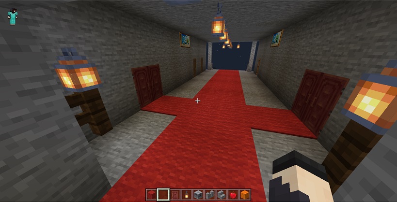 クリエイティブ・モード 帝国宮殿の1階廊下 20231102 0 CM ガルトブルグ帝国の宮殿クリスパレスでは、玉座の間の両脇に2階へ続く階段があります。 玉座の間側から見た1階の廊下はこんな感じ。 扉が無いので、外気が直接吹き込んで寒そうです(^-^; PR