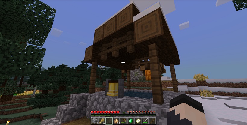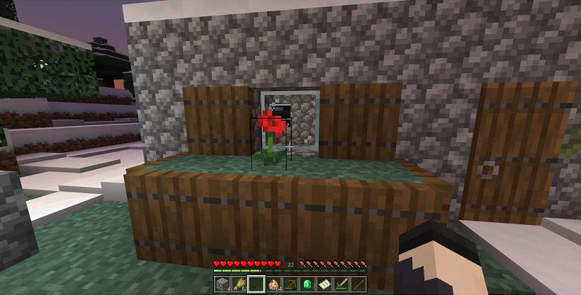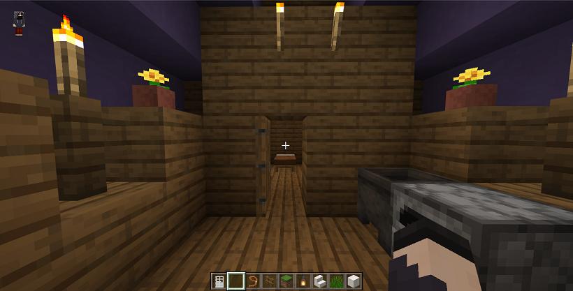 クリエイティブ・モード 宿舎の周りには花壇(作り方は自動生成の村を参考に) 20230325 0 CM 城勤めの人用の宿舎には、花壇があります。 「噴水広場」の花壇と同じく、地面より1段高く盛った草ブロックの周りを「トラップドア」で囲っています。 (トラップドアを倒すと、こんな感じ。) ↓ この「花壇」の作り方、実は以前にサバイバル・モードで見つけた「自動発生の村」の花壇(?)を参考にしています。 ↓ マイクラ世界をあちこち放浪していると、時々「自動で作られた村」を発見するのですが… ↓ そういう村を見つけた時には、建物やエクステリアをよく観察し、その「作り方」を学ぶようにしています。 (以下はプレイ中に見つけた自動生成村のスクリーンショット。)