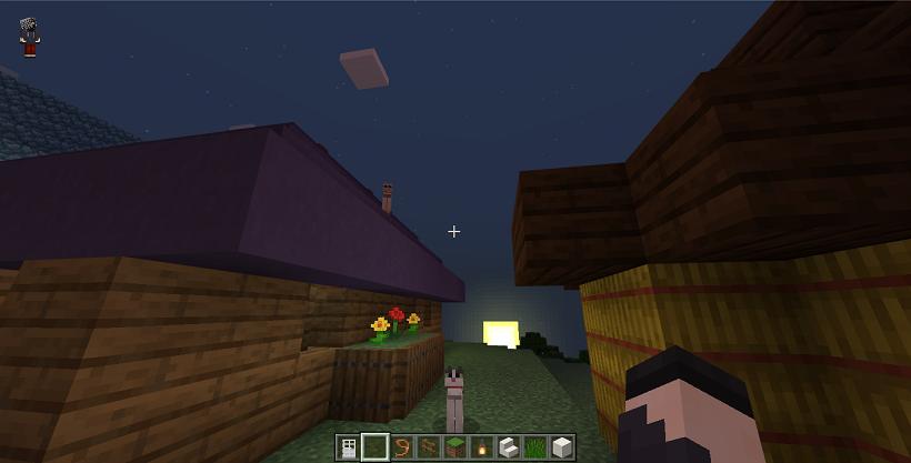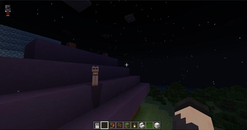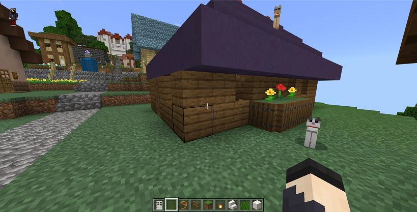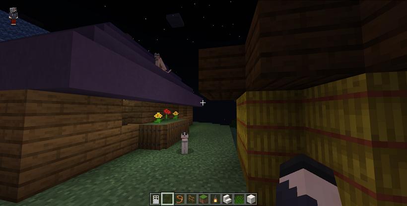 クリエイティブ・モード 城勤めの人々の宿舎(屋根の上にはネコ) 20230319 0 CM 城勤めの人用の宿舎(ファミリータイプ)の屋根の上には、猫がいます。 どうしても「屋根の上に猫がいる」シチュエーションを作りたくて、屋根の上でスポーンエッグ(ネコ)を使い、魚を与えて懐かせました。 (1回失敗して、上手く屋根の上に居つかせられなかったので、屋根の下にも猫がいます。) おかげで、昼も夜もずっと屋根の上からネコチャンが見守っています。