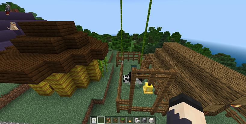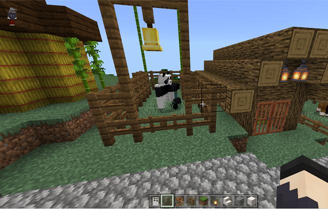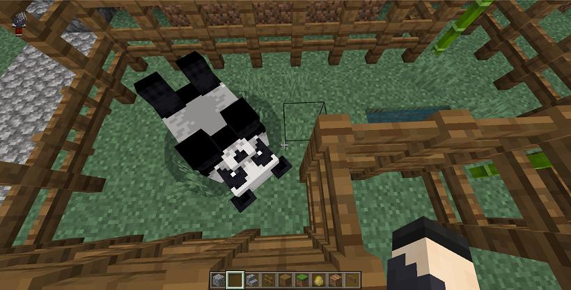 クリエイティブ・モード 郊外は農耕&牧畜エリアにするはずが…いつの間にか「動物園」に 20230402 0 CM シェリーロワール城の城下町、城に近い所には「商店街」、少し離れて住宅街、郊外には田畑や牧場がある…という風に作ろうと思っていました。 なので、とりあえず「牧場」を…と、柵をめぐらし、中に牛か羊でも放とうと思ったのですが… スポーンエッグの種類を眺めていたら、ガマンできなくなり、ついパンダをスポーンさせてしまいました…。 そのせいで、牧場(予定)のはずが、一気に「動物園」っぽく…。 でも、カワイイので後悔はしていません。