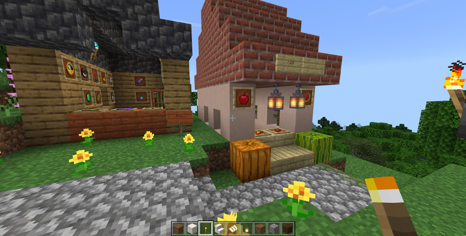城下町の商店街1 20221113 0 CM 「シェリーロワール城」の城下町です。 城からすぐ近くには、商店が軒を連ねています。 弓矢の店や、武器防具を扱う店… 道具屋や、八百屋(青果店)など…。 俯瞰で見ると、こんな感じです。 マイクラの技術を上げるため、あえて様々な素材で様々な組み立て方を試しています。 PR