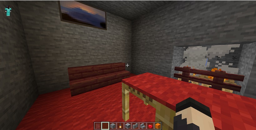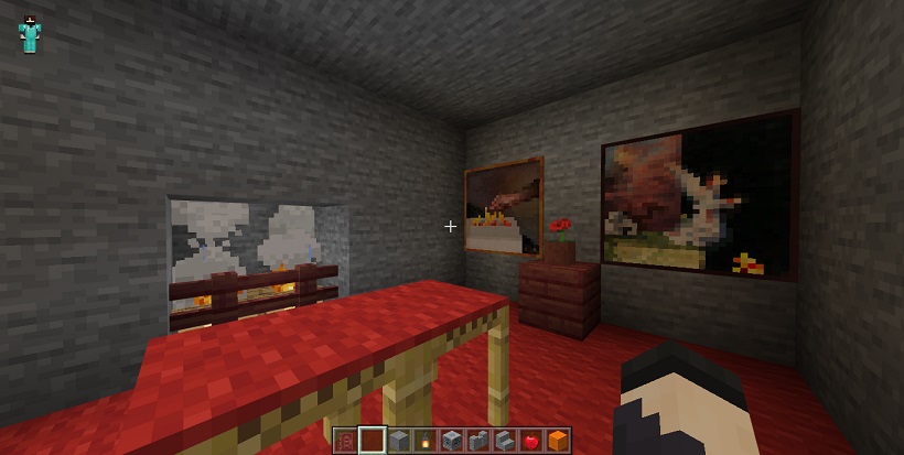 帝国宮殿の控室その1 20230910 0 CM ガルトブルグ帝国の宮殿クリスパレスの、貴人用“控室”です。 フランスの宮殿では、上流の人々が祝宴に招かれる際、「グラン・キャビネ(大付属室)」という、普段は使われていない部屋が開放されていたそうです。 そんなイメージで、玉座のある広間の手前に貴人用の控室的な部屋を用意してみました。 壁をくりぬいた箇所に「たき火」を置いて「暖炉」っぽくしてみたり… 「足場」の上に「カーペット」を置いて「テーブル」っぽくしてあります。 壁には絵画、壁際には花を飾って「客人用」のおもてなし感を出しています。 PR