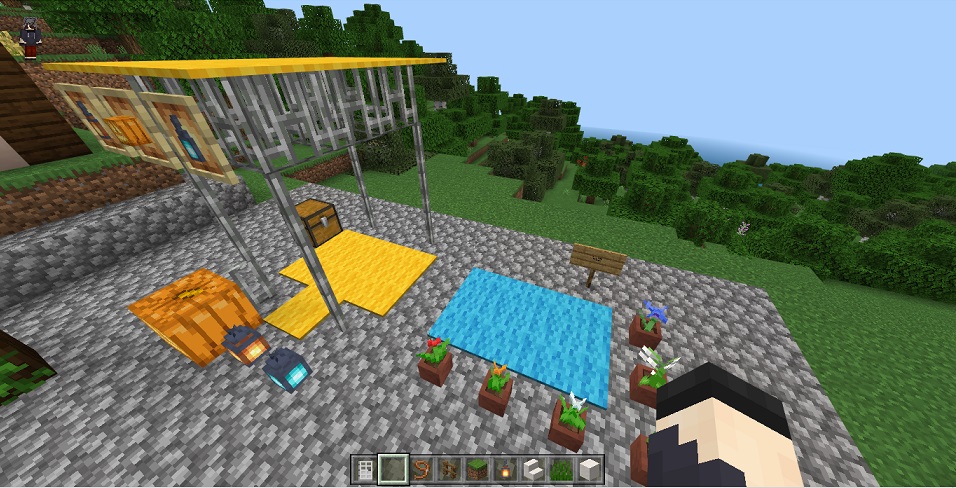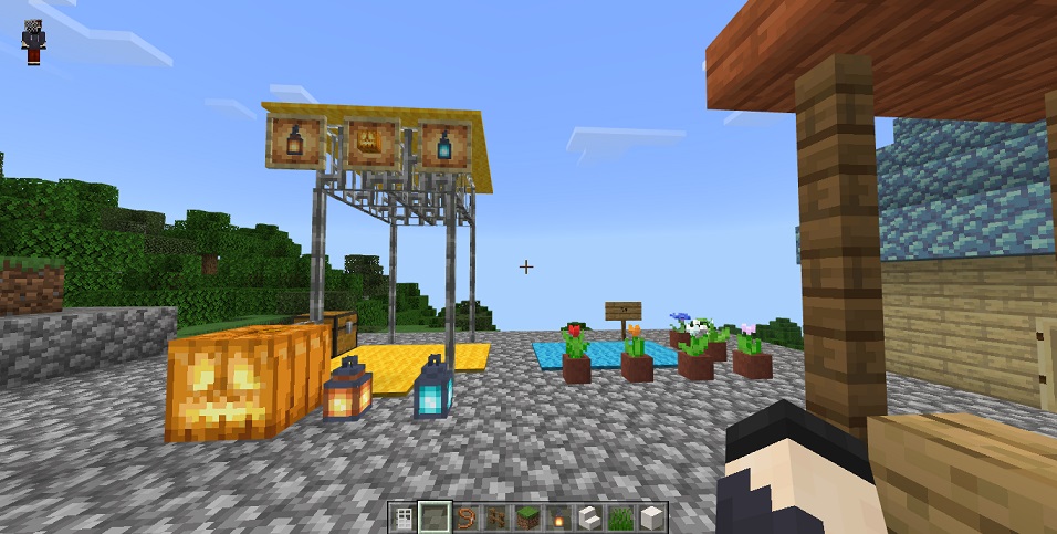 ランタン屋は「鉄格子」と「カーペット」を組み合わせて、屋台のテントを表現しました。
